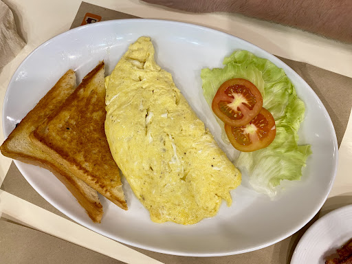 Came here for a super late breakfast. This little corner restaurant located inside the mall has an American Diner vibe matched with a âdinerâ menu, minus the typical âdinerâ pricing. It was rather expensive, compare to an American diner which are usually cheap in the US. Some food was good and some were mediocre. The toasts were good. Ham and cheese omelette was surprisingly scrumptious, totally did not expect that from this place. Bacon was decently crispy. Fries was surprisingly crispy and flavorful too. The meal set was okay. Taco was hilarious but I wouldnât judge them for that. Just like I wouldnât expect a diner in America to have good tacos. Spaghetti was okay. My Salisbury steak was dry and boring I didnât even bother finishing it nor took it to-go. My absolute favorite here was the cucumber lemonade though⌠Definitely fresh and delicious, unlike the powdered version that most restaurants around serve. My picky-eater toddler drank most of it. And the garlic fried rice. Did not look very good but donât let the picture fool ya. That garlic rice was so delicious I went ahead and finished it even though I was stuffed to...