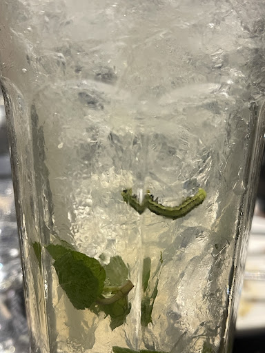 I called a waitress over to check, and after taking a look, she confirmed it was indeed a small caterpillar. She told us she would return it to the bartender. I was shocked and, after a moment, decided I didnāt want a replacement MojitoāI couldnāt stop imagining the caterpillar even if they will serve a fresh one. Instead, I asked if we could replace it with a different drink.