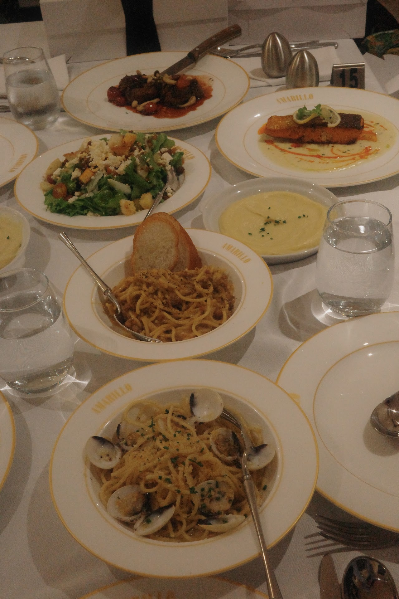 From the perfectly cooked steak and salmon . The food they all served to us was a testament to the chef's skill and attention to detail. Amarillo truly exemplifies fine dining at its finest. While we did notice the absence of serving spoons and forks, it's completely understandable given the size of our group. It didn't detract from the overall wonderful experience.