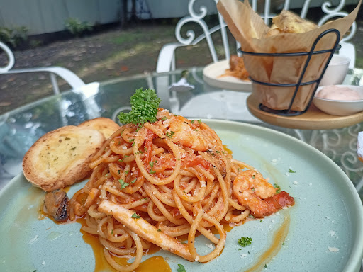 Read moreThis cafe has one of the best pastas I had ever had so after going there for the first time, I came back the next day and brought friends with me. I had the seafood marinara and my husband got spaghetti and meatballs and they were both delicious. The portion size is huge! It's very filling. We also tasted the potato wedges and it came with two sides. The aurora dip is heaven. I also tried the shrimp aglio olio and it was also so delicious. Pasta is still bouncy and shrimp is very fresh. The sunset passion was very refreshing. It looked like they used fresh...
