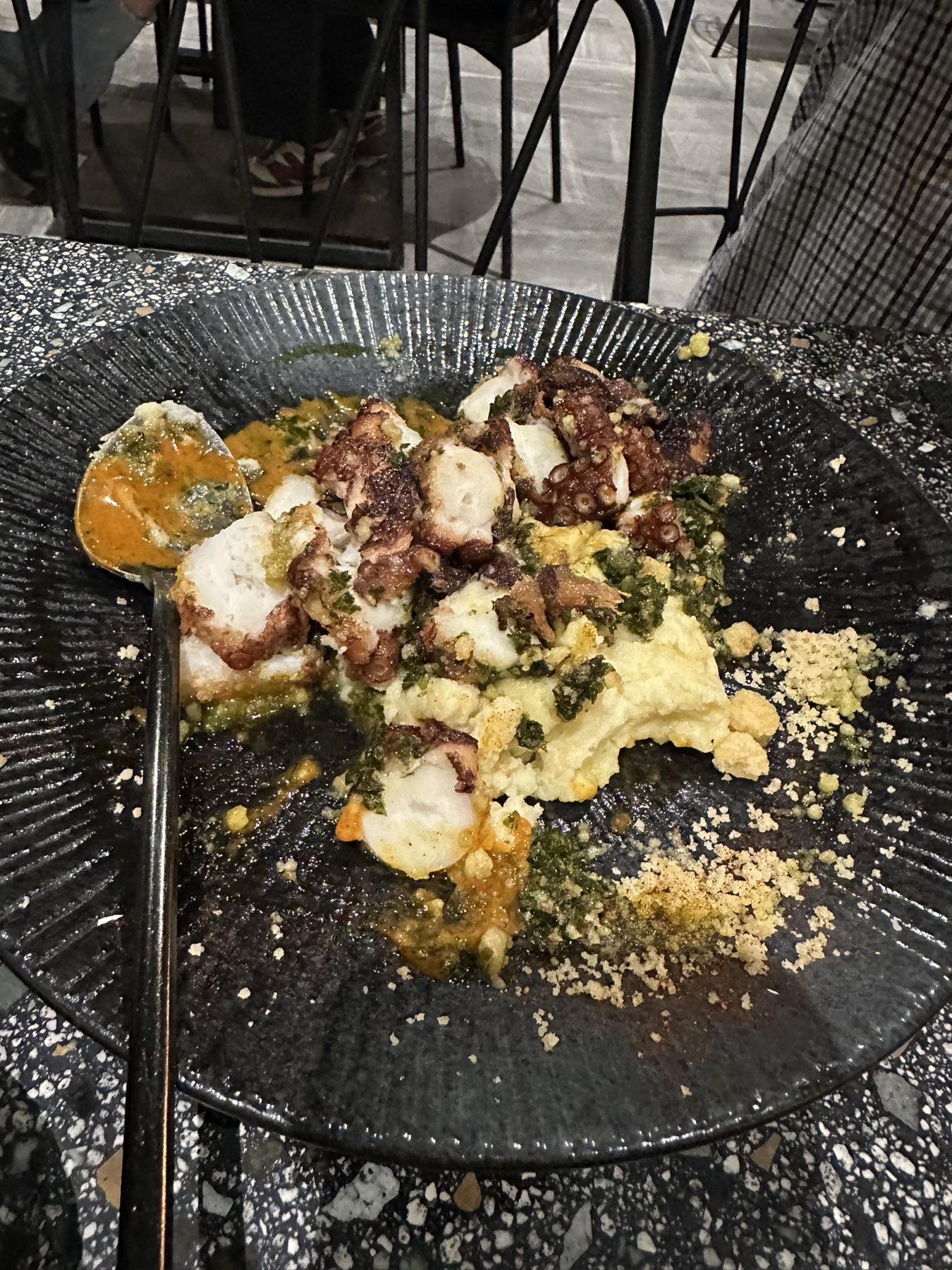 Next is Pulpo. Tough, with many components on the plate that doesn’t go well. We tasted and placed the plate aside. P795 - a waste.