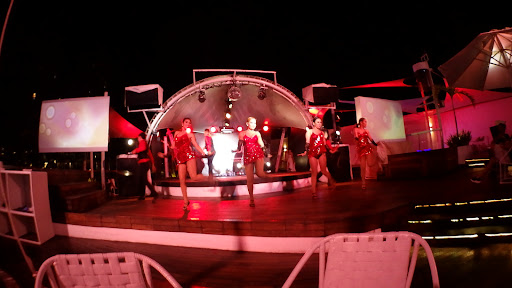 Environment is modern and romantic. A Jacuzzi is located at the bar area. Happy hour 4 to 6 and is a perfect for a drink before dark. Close at mid nite during week days and 2 am for weekend.