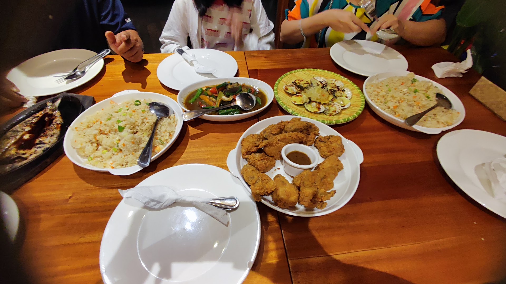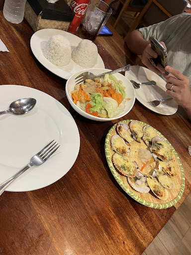 1.) Food Food was okay, nothing mind-blowing. We got chop suey, tuna panga, and baked scallops. The tuna panga came with a sweet sauce on top of it. I wish it was mentioned in the menu so I could’ve asked for it to be on the side. The sweet sauce ruined the flavor of the tuna. The baked scallops came to our table cold which was weird. Chop suey was okay, hard to mess that one up anyway. We also ordered the mango halo-halo for dessert. It was good, but it’s basically sulbing - not halo-halo.
