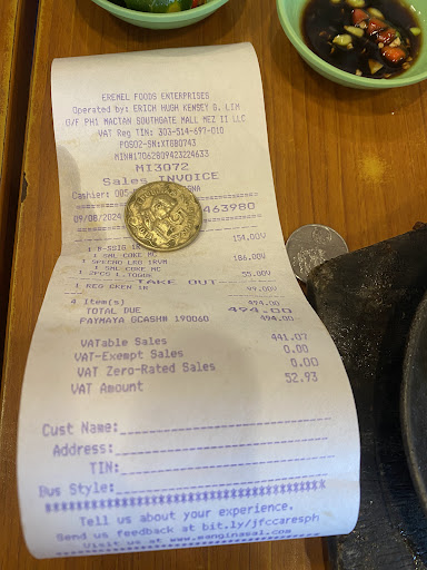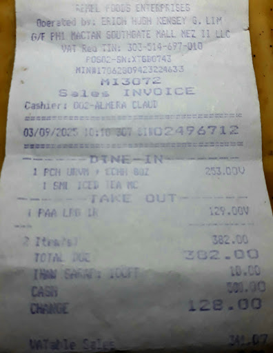 Read moreI dined here on March 9, 2025, at 10 AM with my daughter. When I handed my payment to Cashier 2, Almera, along with my senior citizen ID, she tapped the standee brochure in front of her, seemingly to get my attention, and pointed out that the "Ihaw Sarap" combos were already discounted. However, when I checked the receipt, I noticed that the ₱10 reduction was merely a price adjustment, not the proper senior citizen discount.