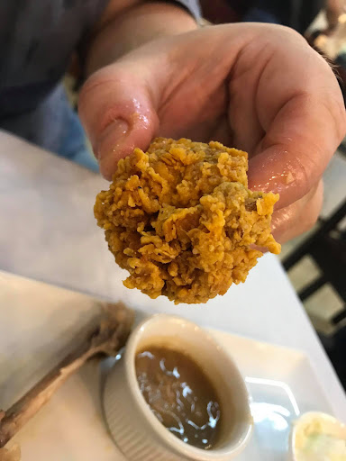 THE FOOD: The food is generally below average. Everything looked like the same tired recipes that are served in 90% of restaurants in The Philippines. The ingredients didn't seem particularly above average. The miniature pieces of fried chicken were mostly breading. The "house specialties" are apparently not served with rice. Overall the food is completely forgettable. THE FOOD: Two stars.