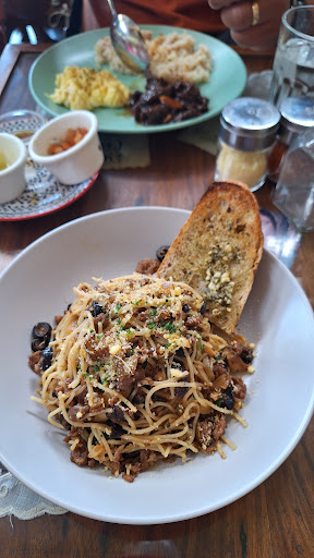 🍛 Chorizo pasta almost 447 php. The serving is hefty but where is the umami? It was also bland and no depth of flavor. The garlic bread was also meh. I was so confused. Where's the chorizo taste on the ground meat? Why did it taste like a regular bland minced meat? 2.5/5