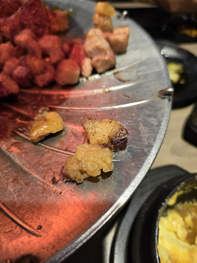 CONS: 1.The japchae was extremely greasy to the point we couldn't eat it. I usually love japchae so it was disappointing to say the least. We are shrimp lovers but the shrimp were small and looked old. Did not enjoy this. Beef Skewers were disappointing - Did not turn tender even after cooking for a long time. Lettuce is a must for us when eating Samgyup - This was not automatically served. We had to request for it and they gave really small portions at a time.