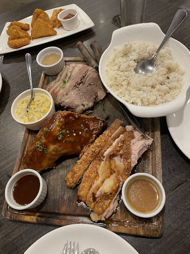 Read moreTried the “East Meets West” platter good for 3-4 persons at 1499 (subject to 5% service charge) and additional order of Buffalo Wings! I’ll start with the ambience which is nice and cozy, service is good. They will set your expectations as to when the meal will be available (15-20 minutes). We were first served the Crunchy Tossed Salad with Peanut Butter Dressing. Aesthetically disappointing because it’s just lettuce and some carrots, it tasted weird at first bite with that peanut butter dressing but the thing is, you’ll want more and it’s a good appetiser as it will literally makes you hungry and ready for the main course. Some appetisers will fill you up easily. The Creamy Salmon in Lemon Crape Sauce tastes good but I admit, I’m more used to eating Salmon as Sashimi. One thing I learned though is those slices of lemon are to be squeezed and sprinkled around the sauce and salmon and not just a garnish. The Buffalo Wings are pretty great specially with the ranch dressing. And yes, the main course, the star of the platter - the Crackling Pork Belly Roast with Miso Butter dip!!! Wow! Just Wow! The meat is unexpectedly tender and the skin is what-you-see-is-what-you-get kind of thing - crispy!! The Miso Butter dip? Heavens, whoever‘s idea this is, is a genius! So good! I highly recommend Crackling Pork...