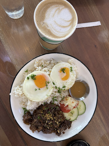 I ordered a silog-style meal featuring garlic rice, perfectly cooked sunny-side-up eggs, and a flavorful serving of beef tapa. The meat was tender, well-marinated, and had just the right balance of sweetness and savoriness. The fresh cucumber and tomato slices on the side added a refreshing touch, while the dipping sauce elevated the flavors.