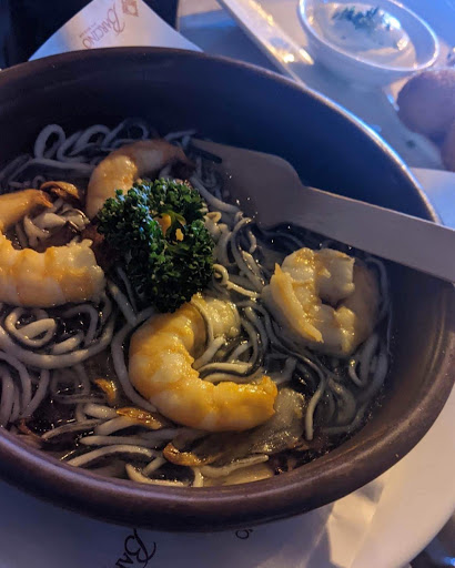 loved the tapas/dishes we tried —— croquetas de quezo asul (nice crunch in the outside, smooth soft & cheesy inside), almejas a la bilbaina (clams w chili garlic oil sauce), paella del mar (seafood paella), & gulas con gambas al ajillo (shrimps w tiny eels in garlic chili oil). had all of these with paradise sangria (red, we had 2 pitchers for the 3 of us 😝🍹)