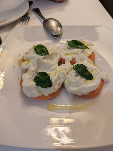 Our experience at Caruso Ristorante Italiano was 5 star. We lived in Italy for several years and we aren't easily surprised by Italian restaurants outside of Italy. This restaurant is the exception. Leo the Manager runs a efficient elegant experience on the level of any fine Italian restaurant in Italy. The ambiance is very old world traditional wood, brass and copper. The art is a playful modern interpretation of Italian food and locations. The tables are elegantly set with crisp white table cloths and well appointed waiters. We were welcomed and promptly seated and presented with three menus food with specials, a wine menu, and a vegetarian menu with a wide selection.of vegetarian choices. We were pleasantly surprised with bread dipping oil, olives, and pungent chunks of parmesan. We were quickly attended to, we placed our order and all questions were answered promptly. Our wine of choice The Primitivo arrived quickly and was presented professionally. The Enasalada Caprese ( tomatoes, basil and mozzarella) arrived promptly. The mozzarella was fresh and creamy. We received our pasta dishes and the the wine paired with them perfectly. The pasta was served hot. The Maccheronni pasta with a truffle cream sauce and porcini mushrooms was divine. The pasta was not to chewy or soft and the sauce adhered perfectly to it. The mushrooms were like velvet and you could smell the aroma of tartufo across the table. I took several bites of my spouse's Ravioli. The Ravioli with Sausage, beef, and pork was tender and well ground. The tomato sauce was bright and flavorful with the right amount of Parmigiano cheese sprinkled on top. Our wine glasses and water were refilled regularly and we were not hurried through our meal. I wish I had room for a second course, pizza ,or dessert all looked delicious. We opted for an authentic glass of lemoncello the perfect digestif for a lovely meal. We can't wait to come back on a Saturday for the piano player, or the Tuesday Tango dancing. Altogether a lovely peaceful meal on a Monday night with a busy but calm restaurant was appreciated. Well worth making a reservation. I can't wait to try more dishes. Thank you to Leo and staff for a 5...