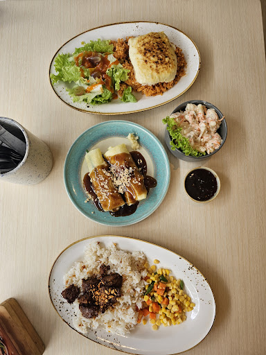 Dined in here and we ordered baked salmon, beef salpicao, fresh lumpia, macaroni salad and ube halo halo. The baked salmon was good but the cheese topping was overwhelming that there's an "umay" factor while trying to finish the dish. On the other hand, beef salpicao's serving size was a bit awkward seeing the size of the plate. The beef amount was lesser than expected, especially on the amount of rice served. The taste was good tho but the tenderness of the beef was a bit.. I mustn't say because I'm a cat. I don't like hard things.