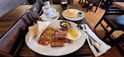 Read moreCame in on a thursday afternoon for a late lunch. The place was almost empty, it only had a few customers at that time. I ordered a Lumberjack Slam since it had every breakfast item and I wanted to taste their pancakes. My order arrived complete after 10 - 15 minutes later. The coffee was alright, it was generic fast food brewed coffee. Pancakes was good. They were a bit dry since they were a bit stingy on the syrup. The toast was cold, which was not good. The hashbrown was also cold, chewy and greasy. Eggs was perfectly cooked. The ham was also cold and greasy. The bacon strips were crispy but they were kinda salty. Fruit was fruit, you can't mess up fruit. All in all, most the fried stuff was cold and greasy but the pancake and fruit was aight. If want to order this dish just order the...