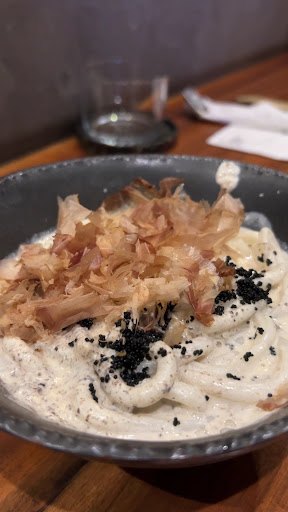 Food was okay. Here’s my honest review: Normally when I eat at a place that serves Donburi as their main dish - I always try their Beef Gyudon. Beef was tasty but it lacks sauce and the rice and the sauce just feels so dry. I am not even sure if they served it with Japanese rice but it isn’t as moist as it should be. Truffle Udon- it was tasty. It had strong truffle flavors and it was creamy. However when it came to the noodles- it was awfully soggy Salmon was good and the rice. I was thinking that maybe because the salmon was more expensive than the Beef Gyudon at about Php 700+ per bowl- it should definitely be more premium than an almost Php 500 bowl of Beef Gyudon We tried their mushroom with aioli- the sauce was good but the mushroom lacks flavor. It was just breaded and there was no taste to the breading. We even had to request for Togarashi powder just to give it a kick. There are better breading mixes available in the market where they could’ve add taste to their mushroom.