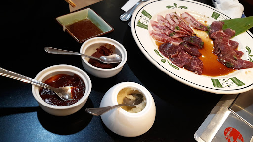 we got the 1050php meat set that was about 300g (100g per type of meat that was already marinated) 4/5, spicy soup for 380php 3/5, the refillable kimchi 5/5, and a cup of rice. with drinks it all cost about 2k for both of us. the electrically grilled beef was good, like the other reviews. good thing they told us they had a signature sauce - which was gochujang, soy sauce, garlic and some fermented stuff (the three sauces you see in the pix). your supposed to mix them and dip the grilled meat in them. tastes very new to me and a good fermented taste. I was very happy munching down on the kimchi while eating the grilled beef with its sauce. I wish I could have tried the really spicy soup - the spicy beef was 3/5 nothing new. not well seasoned since the kimchi covers my tongue with salt. Its just expensive. so that's less than 150g of meat each of us and sending 1k. but I just want to replicate the sauce at home with...