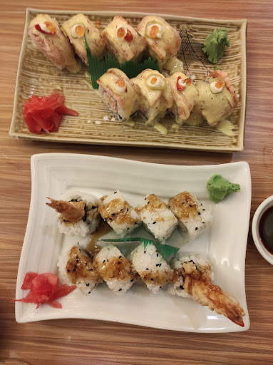 We ordered three rolls: dragon roll, spider roll and Philadelphia roll. Drinks were served promptly but the rolls were not served for a long time. We had to follow up on our order and we got Philadelphia roll but the salmon was not fresh, it’s frozen. I don’t have to guess as the frozen salmon was displayed on the counter.
