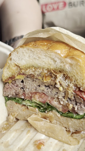 》The OG | 100% Wagyu beef, american cheese, 3 bacon strips, lettuce, tomatoes, half caramelized onions, special Love! Sauce and toasted potato buns