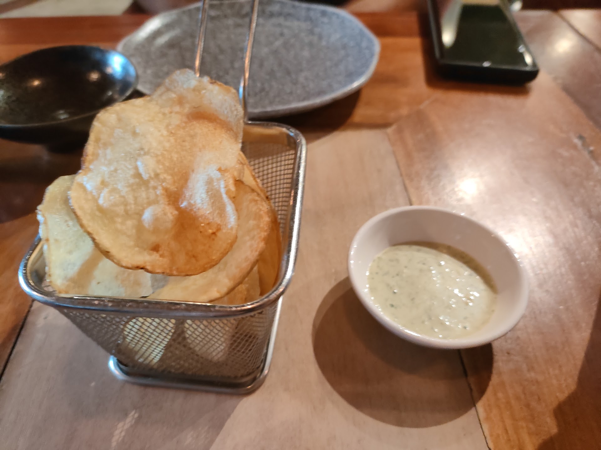 Read moreI ordered the uni sushi and chiperones but they didn't have any, this was disappointing. The complimentary potato chips were good but not freshly made. Some of the chips were cold and not crispy. They can replenish for free once but the next one will have a charge. The server who told us this said it like a threat lol Parang hindi ko babayaran if I wanted to order again, she was not polite. The starters we got were the kurubota gyoza and unagi asparagus roll. The gyoza had a crispy exterior that exploded into juiciness of the filling with every bite. The Unagi sushi was also delicious. My husband had the soba and he liked that one too. Although we don't know why the waiter who served it to him started explaining how to eat the dish. It was so condescending. Why would my husband order it if he didn't know how to eat it? We didn't ask so why do your spiel? It's such a common dish, nothing special about it. All the appetizers were great except for the main course that we had. I had the Truffle Gyudon and my husband had the Black Cod. The Gyudon had a truffle scent but hardly any taste of it and it was bland. I had to add several drops of soy sauce to make it have some flavor. The Black Cod was also soso. This is more like a drinking place, I think, that's why it's the pica pica that was really good. Maybe we should have gotten the yakitori. As for their service, we never got our service water replenished. I also got a feeling they kept on pushing us to order their beverages on the menu. It was a late lunch so 2 PM and they already gave us the liquor menu lol We are not drinkers so it didn't appeal to us. The ambience is nice but there are other better Japanese restaurants with more attentive, polite and friendlier service. I am not impressed...