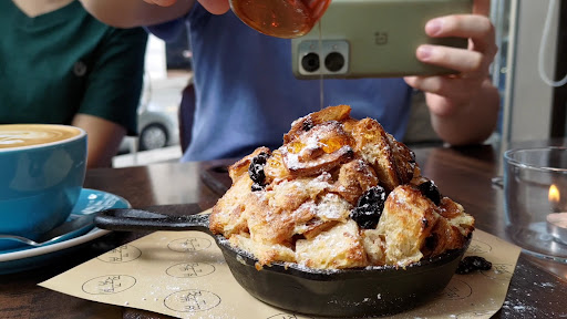 Food: We had a heavy breakfast and really didn't plan to eat anything else, but I couldn't pass this place when I saw it. We ordered the Caffe Latte (P190), Vanilla Latte (P225), Himalayan White (P160), and Refinery Bread Pudding (P225). The drinks were aesthetically pleasing to look at, but the taste was just as pleasing. According to my companions, the Caffe Latte was just right for their taste as it was bitter and sweet enough, while the Vanilla Latte would be perfect for those who liked sweeter coffee. As for me, the Himalayan White had a clean and calm taste, perfectly complimenting the dessert. It's also a bang for your buck because they happily refill it with hot water, essentially getting two drinks for one price. The star of the meal was the bread pudding. It was such a treat to pour the honey. It was sweet but not the overwhelming sick sweet feeling. The bread had a crunchy crust, but soft inside with a cinnamon-ish taste. The raisins added a gentle tart flavor to the dish.