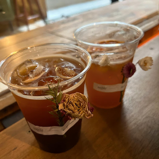 What makes Saglit truly special is its dual identity—a coffee shop that doubles as a dried flower shop. It’s a fascinating combination I’ve encountered for the first time. They specialize in artisan coffee and unique mocktail concoctions, each prepared with meticulous care and creativity. We ordered an Iced Long Black and an Orange Masala Chai, and the presentation immediately impressed us. Each drink came adorned with a twig of dried flowers, adding a thoughtful and aesthetic touch.