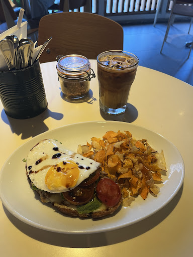 Read moreI had the adobo sourdough and paired it with iced latte. It was my first meal of the day and so I wanted to have something savory. It’s a nice take on a classic Pinoy dish. The adobo was laid on top of a bed of melted cheese on the sourdough bread, some arugula leaves, some tomato slices and a sunny side up egg. The balsamic vinegar drizzle added a nice sweet and sour dimension. It also came with a side of crispy sweet potato chips. I’d expected the adobo to be drier, flakier. I found it sloppy and wet. It was dripping with the adobo juices which was tasty but the bread underneath turned saggy and spongey in no time. I even stained my shirt with the first bite. Overall, the whole dish wasn’t mind-blowing, it was quite filling and a good dish to have to break...