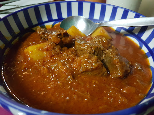 Harira - love this comforting soup Gambian Jollof Rice (extra meat) - again, mouth-watering, tasty and hits the right spot Madras Egg Curry - wow Nigerian (Beef or fFish) stew - I've tried both and they are equally spectacular Kebabs - can't go wrong with what you pick here