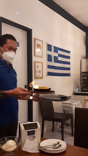 For dessert, we had their flaming mango. There was some thrilling action that happened. A sizzling mango in a hot plate gets poured of tequila and lighted in front of you and everyone from the resto yelled 'Opa!'