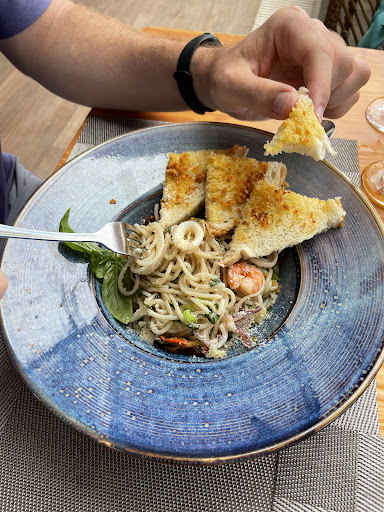 Rather disappointing experience. We ordered seafood garlic pasta and seafood alfredo pasta. The food itself was tasty, however not that hot and the portions were rather small. I would prefer more pasta instead of garlic bread.