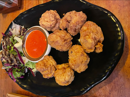 We tried the seafood ramen and chicken karaage. The broth was tasty, but the noodles felt more like spaghetti, and the large crablets were hard to eat(frankly inedible unless deep-fried or served differently). On the other hand, the karaage was perfectly cooked—juicy and crisp with a nice side of cabbage.