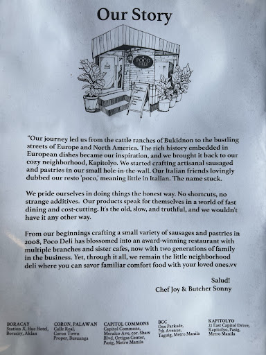 Read moreI recently visited Poco Deli in Boracay and had an excellent experience. The staff, including the owner's husband, were incredibly personable and genuine, making our dining experience very welcoming. The layout of the restaurant is tasteful and it stands out as one of the cleanest I've visited on the island. We enjoyed a variety of dishes including a flavourful pastrami sandwich, pastas, and paninis, all of which were delicious. Plus, their truffle fries were bomb! The deli also boasts a wide selection of wines and an impressive array of desserts and house-made sausages that I'm eager to try on my next visit. Highly recommend for a quality...
