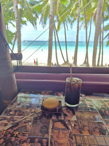 Read moreI had heard that they had views to die for and that they were the home of the original calamansi muffin, so I added this on my list to go to whilst in Boracay! I went around 11:30 in the morning and easily managed to get a seat at the front to enjoy the views. I guess at busier times, you may not be so lucky. Huge menu from breakfast to sandwiches, coffees, juices, shakes and more. A gentleman near me was having breakfast which looked good. I went for the calamansi muffin as I wanted to try this and an iced coffee. It was very peaceful and relaxing. Not too busy, and I ended up sitting there for over an hour enjoying the views. Nice atmosphere. Easy to miss. Despite being located on the beach, the entrance is small and you have to go up some stairs to reach the cafe. The muffin looked like a plain cupcake. It was small. However, for me it was very sweet with a slight tangy flavour. I can see why it was small and it started to become sickening. I enjoyed it, but I struggled to finish it. The bitter black iced coffee balanced out the sweetness. I tried it. I wouldn't have it again. Too sweet for me. I would go back for a coffee or to try one of their breakfast items. Cheap. Cash only. Clean. Staff are pleasant and friendly. ...