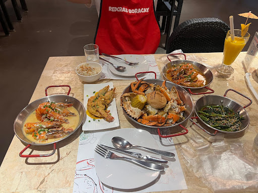 Read moreSuper awesome food! Fresh, Delicious and reasonable price. I've ordered 2 crabs abt 800gm each (your choice to choose the size of the crabs), 1 cooked as garlic butter crab n the other as chilli crab. Super fresh n delicious. Also ordered their carbonara prawn that is awesome too. 6 Big Fresh Prawns that go so well with the carbonara sauce. We were given 2 complimentary dishes by the Korean owner, Black Pepper Prawn + Stir Fry Kangkong. Strongly recommend their Black Pepper Prawn, the sauce is so so good! Super friendly owner (always smiling) n very helpful/friendly server. She explain their menu n pricing very clearly so we know that we are not overcharge. A pleasant dining environment as well. For 3 pax n with the dishes we ordered + 1 garlic rice & 3 plain rice + drinks, we spend about SG$50 per pax (about 2000p per pax) which is reasonable for the quality of the seafood. I strongly recommend Red Crab when you visit Boracay n looking for a good restaurant for...