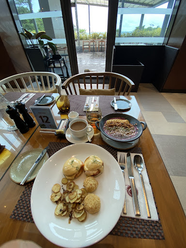 Best to start early at 7am so not too crowded. Villa guests are welcomed at Azure, however Saffron is a better choice if you want more variety. Pastries are delicious, Ube pandesal, ensaymada, Calamansi muffin (the best)! Coffee (Americano/Cappuccino) not as strong as the one served in Azure. Both mornings we were there, coffee order took a while to arrive.