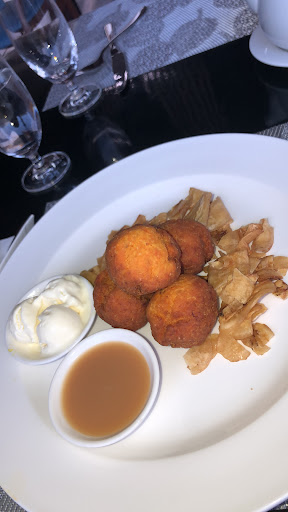 If you’re looking for an luxurious vibe - you found the right place. It’s located in a luxury resort that has a pool inside of the hotel and you can seat right next to the pool. Must note that they have a large selection of dishes relative to any East Restaurant and even a digital menu with pictures. Also the waiters are nice , refilled our water every couple of minutes , there is a wine bottle on every table. Shortly i can say that the portions are quite small relative to the high price shown and it takes about 40 minutes to them serve your food. And now I’ll describe. We ordered chicken and cheese pasta in a truffle sauce which was really good, the truffle less noticeable, the chicken was dry because they deep fried it for some reason. but the dish was relatively small ... the size of a childrens dish which is a little sucks because of the high price of the dish. Also we ordered Tataki Tuna salad which was also disappointing because the whole dish was just lettuce, barely vegetables (just a drop of carrots and maybe onions ..) The sauce was too sweet - like vinegar and honey. The dish is not so satisfying even though it’s listed as main course. Not what we expected. Also we ordered a dessert. Like banana cake balls that were deep fried with vanilla ice cream and dolce de lache souse, and dried banana snack. the taste was nice but not more. Unfortunately they had nothing but only this , everything else was not available. We really wanted to try the ube ice-cream ... ( i have only the picture of my pasta dish and...