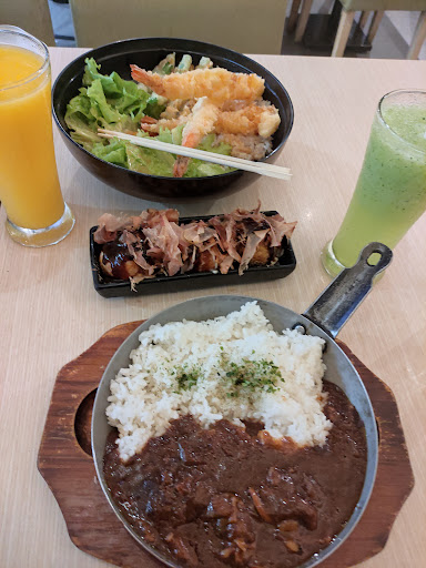 🍤 prawn tempura rice bowl 🍱 beef hayashi rice 🍙 unagi & avocado rolls 🥢takoyaki 🥭ripe mango shake 🍹green mango shake