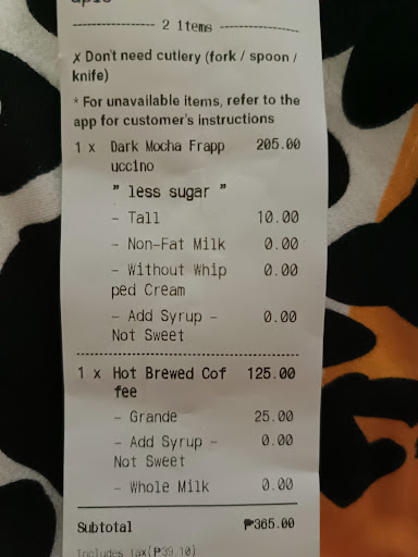 So far (and trying to say this as kind as i can..),the worse service i've experienced..number of (consecutive) times i find it just unsatisfactory. First, ordered ahead via app with specifications, barista perhaps may have not seen "light,no whipped cream". I informed what i specified via the app, seconds later barista came back with same drink only cream was shaved off the top (other branches would normally re-do the beverage, whose to say non-fat or soy was used if no whipped cream was not even read?🤷🏼♂️ quality was compromised at this point). Second, applying e-stickers without confirming for an e-sticker. Thirdly, following up on the e-sticker 7 days after the purchase despite already acquiring some details (i called the customer service 2 days after purchase and 3-4 days before their follow up). Fourth, came in and opted to back out when line was too long and 1 cashier working. And fifth, came in again on a day with few customers and i understand patience is required with less service crew, but with 1 cashier functioning and 1 customer requiring "more time" for his/her inquiry, other branches would automatically either open another counter or ask the next person in line for his/her order and get it prepared while waiting for her transaction to be completed - which i think is more efficient.🙁 I myself am really surprised since i dnt mind paying for coffee or pastries at a higher cost because starbucks usually comes with craft and great service.But...