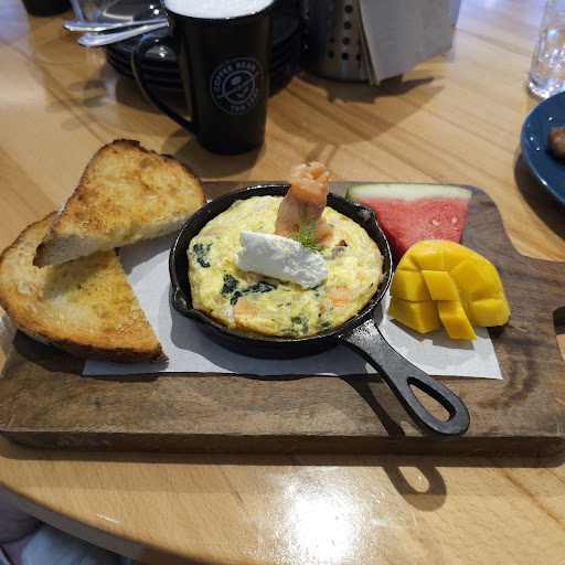 FIRST REVIEW: I arrived at 10am. The cashiers and wait staff must not be morning people, because it took them a while to acknowledge my presence in front of the counter and they couldn't crack a smile. They bagged my Baked Eggs with Spinach & Salmon with no utensils and no napkins. I didn't realize this until I opened the box at the cinema, so I had to get my hands dirty to eat it. Before the barista bagged my coffee, I asked him to include a couple of napkins in the bag, but he didn't. Again, I didn't realize this until I was already sitting on my seat at the cinema.