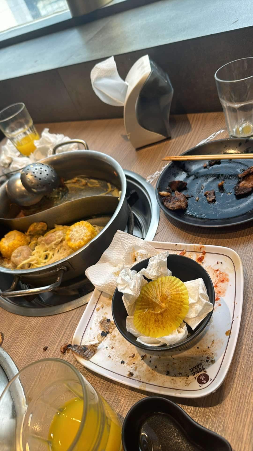 Worst thing about this branch is definitely their plates, utensils and grill. Looked like they dont clean their grill at all and they deal with the filth by putting thr wax paper on top of it. We were actually the first ones seated during lunchtime because I reserved so the dirty utensils and grill is a big issue to me. 😬. Some plates on the buffet part also had some dirt. Idk how to explain this nicely; but the first time I asked for sliced beef, the staff took those plates from their kitchen and they were stacked, before he sliced the beef, he looked at the plates and 3 of them were dirty so he did not use it, like there were literally some yellow stuff on the edges. Looks like staff here are not a fan of cleanliness. Honestly wanted to go after I saw that but we already ate some of the cooked food so I just let it slide because I have to pay anyway. Obviously would not dine here again, even though the staff were...