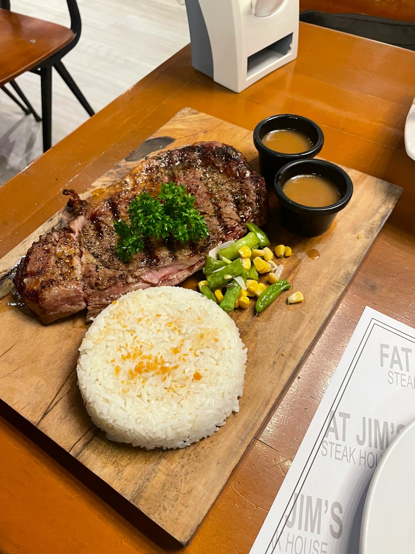 Regardless, the 400g Angus Ribeye Steak is to die for. I’ve asked for a medium and it came perfectly grilled, and seasoned intensely well. With each tender and juicy bite, the flavour was elevated by the salt and pepper. I would say that even the price went up, this steakhouse is very much worth the price when compared to the recently opened Yappari Steak (main branch in Tops) in SM JMall (200g for P780+).