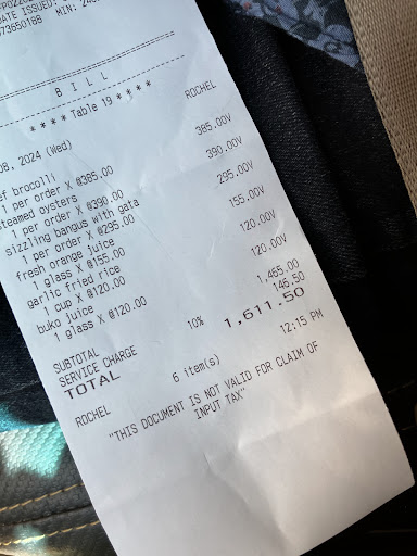 Read morePlenty of parking near entrance with the back. The restaurant has spacious seating arrangements. Large collection of fresh (still swimming) sea creatures look healthy prompting a scrumptious lunch. Beef broccoli, p385, Steamed Oysters, p390, which you will get 1 free deal👍 the beef broccoli is similar to Chinese style, but a bit bland. Broccoli is perfectly sautéed, strips of beef is soft, but lack robust taste that we craved. Slightly boiled medium sized oysters tasted clean but lacks the briny or sea taste. One order is 6 oysters, so they gave another 6 for free😁 Sizzling boneless bangus with gata, p295, served up smoking hot with hint of ginger and carrot in the slightly sweet cream. Well, it’s not our favorite as the bangus lost its flavor due swimming deep in sweet carrot and coconut sauce. The restroom is outside near outdoor seating area is clean and fully stocked. Back to the food, perhaps we haven’t order the right dish but will...