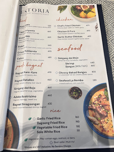 I recently attended an event at Estoria Manila and was genuinely impressed. The place has a cozy but elegant vibe perfect for intimate gatherings or small celebrations. The staff were attentive and very polite, and the food? Super delicious and beautifully plated! I especially loved the kare-kare, pancit, chicken and the desserts.