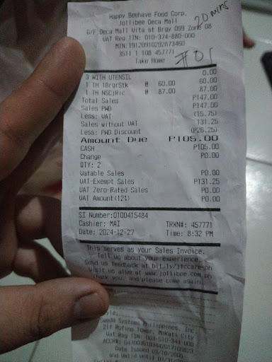 We waited for 30 minutes. As a Person With Disability (PWD), it's unacceptable to be sidelined simply because my condition isn't visibly apparent. I had my partner wait in line for me because I was suffering from a headache due to hunger, and we were in the PRIORITY lane. Yet, we were told to move to the regular lane. The crew was extremely rude. They prioritized people who cut in front of us just because they were older, even though we had waited our turn. There was no consideration and it was extremely unfair.