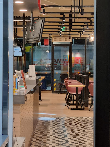 Layout is maximized for seating capacity and feels cramped. Queue to pay at the counter even after self-ordering kiosk use takes a long time, plus more waiting for food to be available.