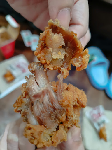 Read moreWe ordered Fried Chicken but we had to ask for gravy on the counter which brings us to the second point Their gravy dispenser is broken, making the gravy splatter on my clothes. We would have known if only they put a notice or warn us about it The comfort room had a foul odor There are no security guard, hence the increased number of destitute people, I understand if people who are in need would ask for alms but we just got our food swiped by one of them, making the environment unsafe...
