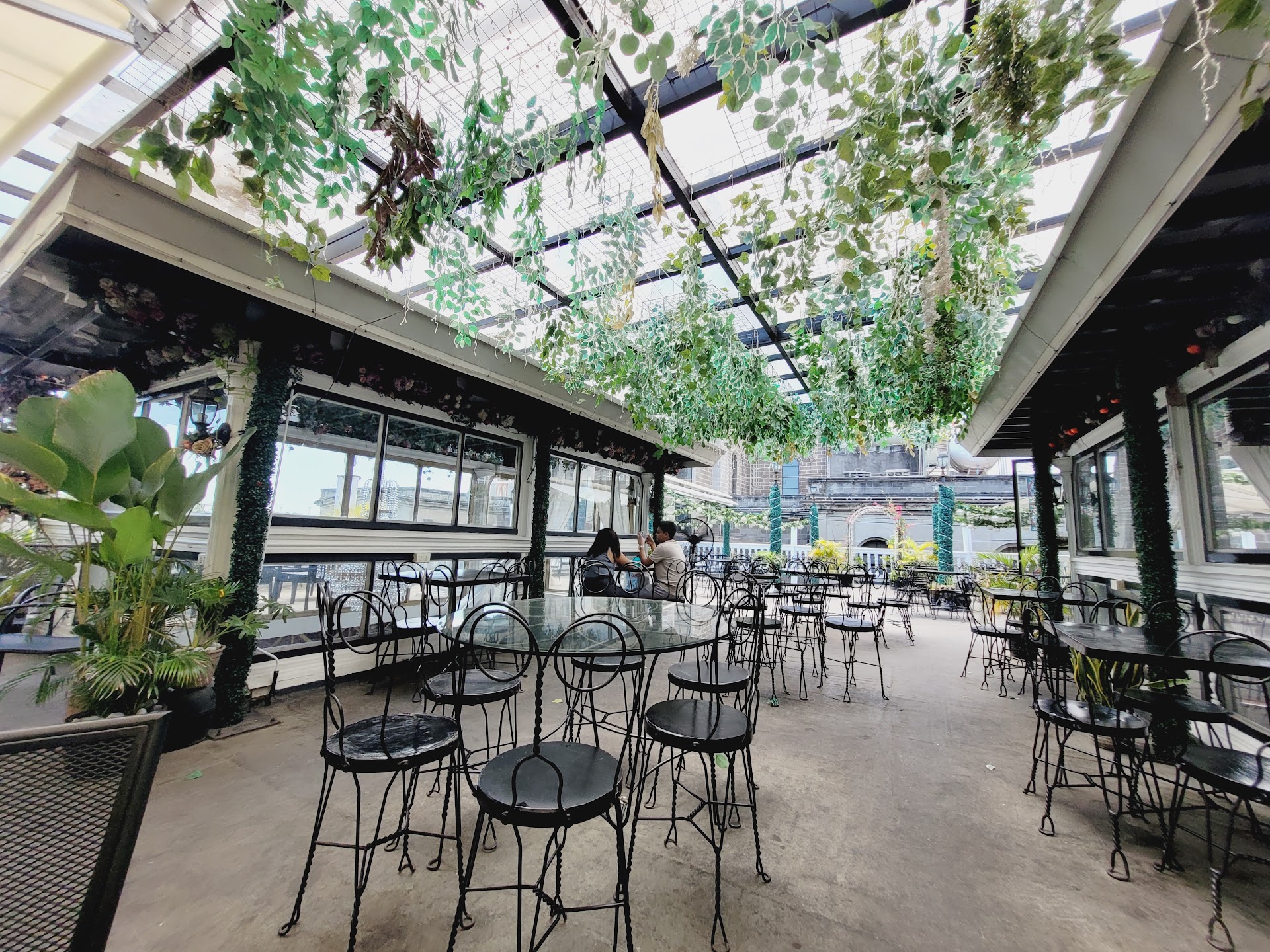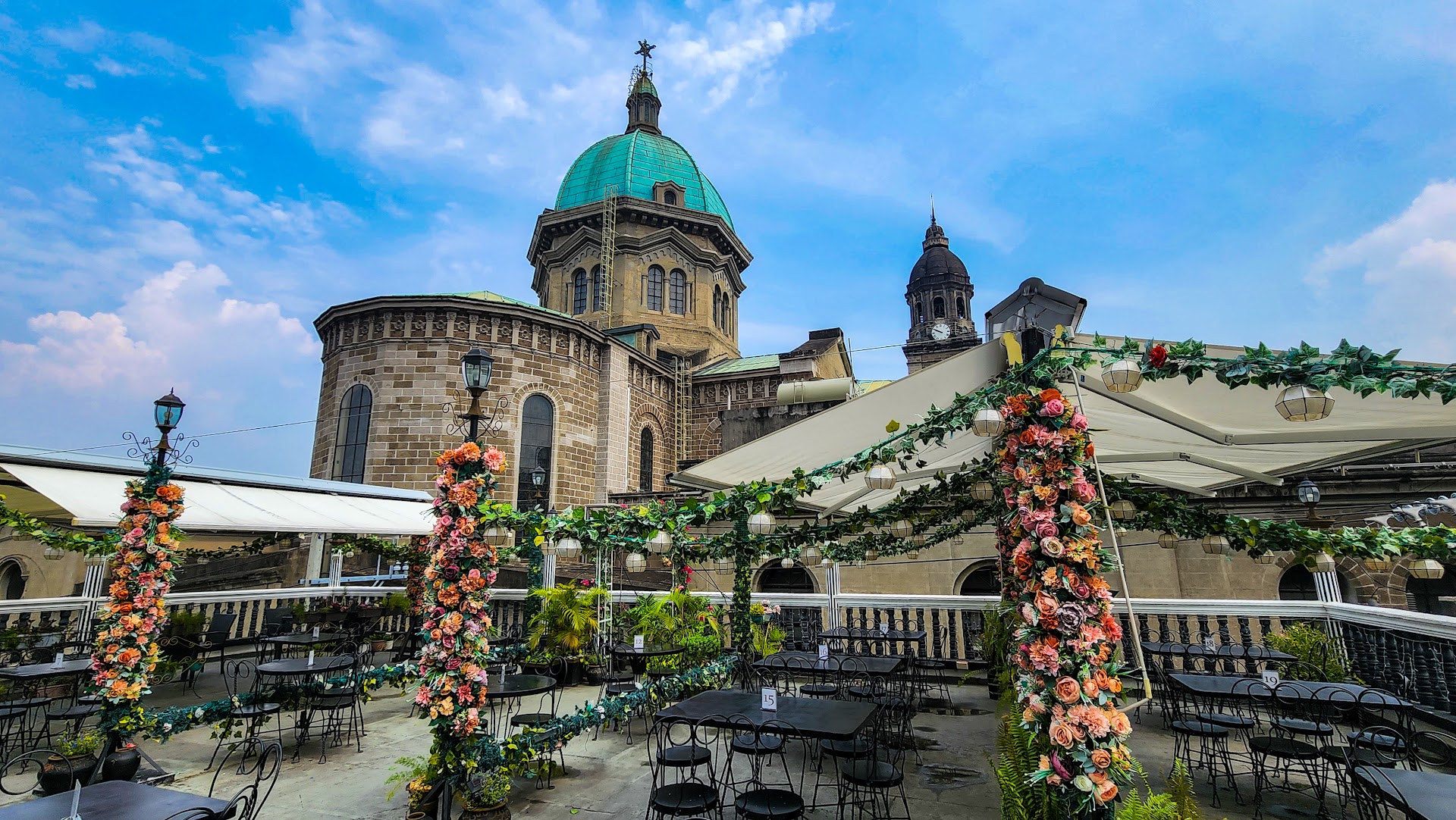 Getting there was a bit tricky for me as you had to go through several establishments until you make it to the third floor. For a moment I doubted we were in the right place but you cant miss it as there was a huge sign on the street to indicate where the cafe was located. Tip: Just follow the trail of artificial flowers and it will lead you to it. After what seemed like endless flights of stairs, we made it to the top and what immediately beckons you is a spectacular view of Manila Cathedral. When we got there, my eyes were just glued to the scenic view of the cathedrals' teal copper roof.