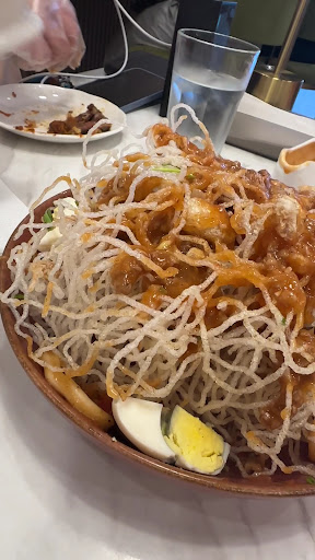 Food - it’s okay, nothing too special. Our orders: Pork sisig - yummy! Fat to lean portion is ok! Only issue is the plate wasn’t sizzling anymore and the egg on top was still raw. 4/5 Crispy palabok - way too oily, plate was too small for mixing, and sauce was not enough and not hot enough to soften the noodles. Taste-wise, not special too. If you want crispy palabok, no hate but go for Manam instead hehe. 2/5 Caesar salad - good portion but not mixed well. Sauce sank at the bottom and some leaves were full of salt and pepper. Plate was too small for mixing. 4/5