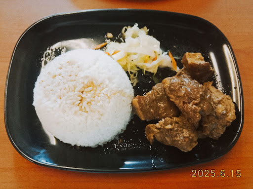 Moving on to the spare ribs with rice, it is priced around 215 pesos. I loved how tender and soft it was; it wasn't difficult to chew, and it is a bit sweet, but there's a slight hint of saltiness in the background. It is paired with an array of vegetables that I had the delight of eating, and I'm assuming some of them were strips of cabbage. The rice was perfect, and I liked how there was a small amount of sauce (perhaps a mix with soy sauce?) on top. My only complaint is that it wasn't served hot; it was more on the warmer side, and I believe that the flavor itself could've been better had the temperature been different.