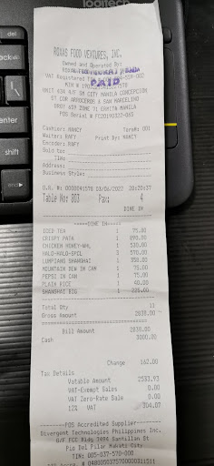 Read moreI dine here yesterday with my family, it was my first time and will be the last. my father use to tell me stories about this restaurant that they had great food and service but things change. FOOD - The food was just average and i notice they put MSG on the food as my body reacts like the dry lips, thirst feeling and dizziness, if you're health conscious this is not the place to be, there are other restaurant that are far better, i think this is because of their brand name but poor quality. SERVICE - We haven't started eating the cashier ask us to pay immediately, and halfway eating about 5mins they immediately serve the halo-halo, they expect us to eat that fast. the food arrived in 20mis but i don't like the idea they serve all at once including the dessert and chase you to pay your bills...
