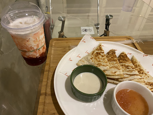 Read moreFor the food we ordered, we had a beef quesadilla and strawberry milk, both of which were mid at best. The quesadilla lacked flavor and looked sad and the milk tasted artificial and bland for its price.