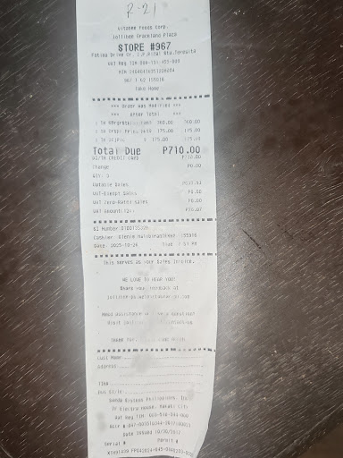 Also, it has the WORST quality of food among Jollibee branches I've been to. We ordered Chili-cheese burgers and it was so dry. Not to mention, you can't even taste the sauce until you've eaten half of the burger. I had the same order elsewhere and it wasn't as dry. Just...
